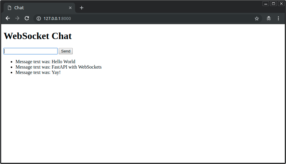 And your FastAPI application with WebSockets will respond back: